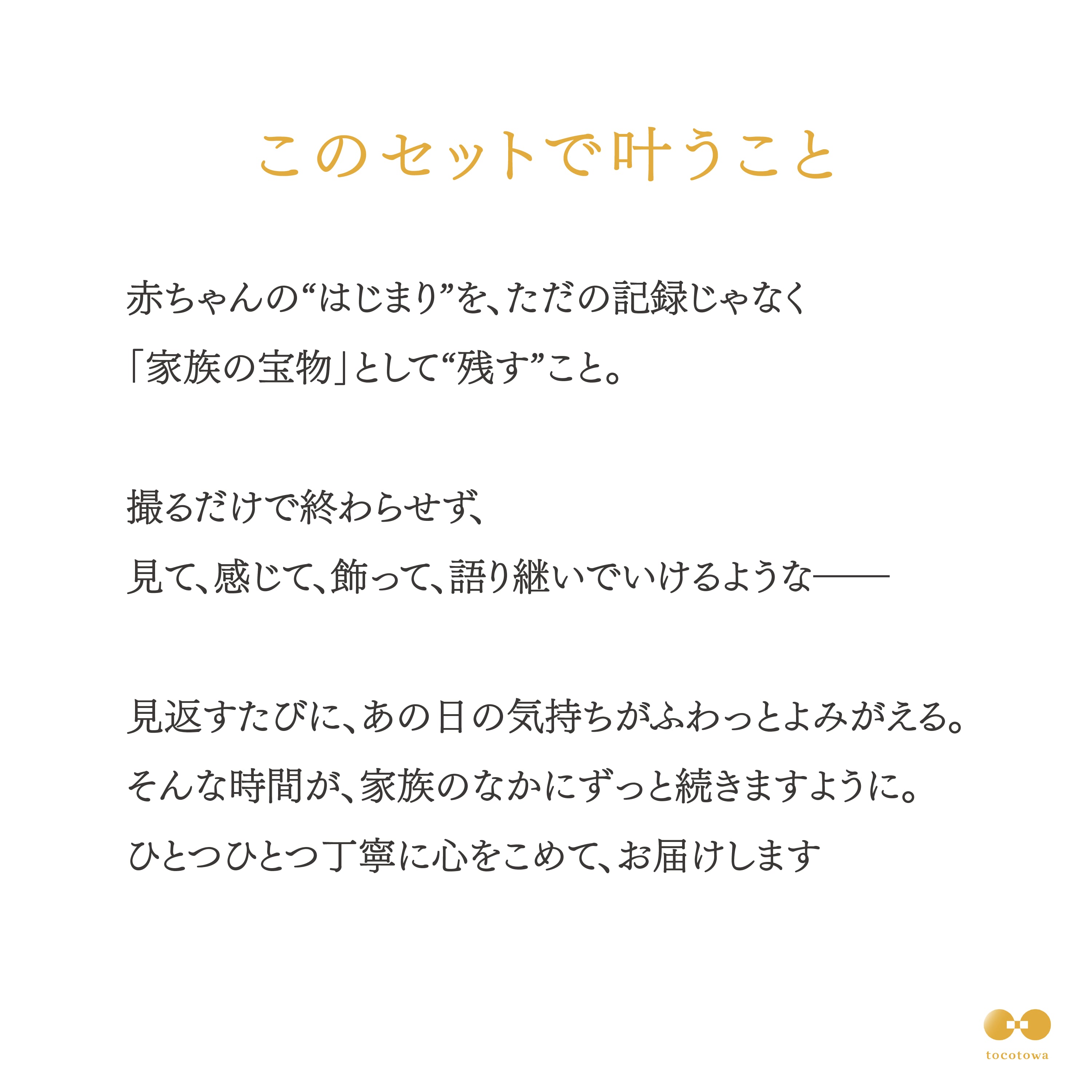 赤ちゃんの特別な記念日を、やさしく、美しく残します